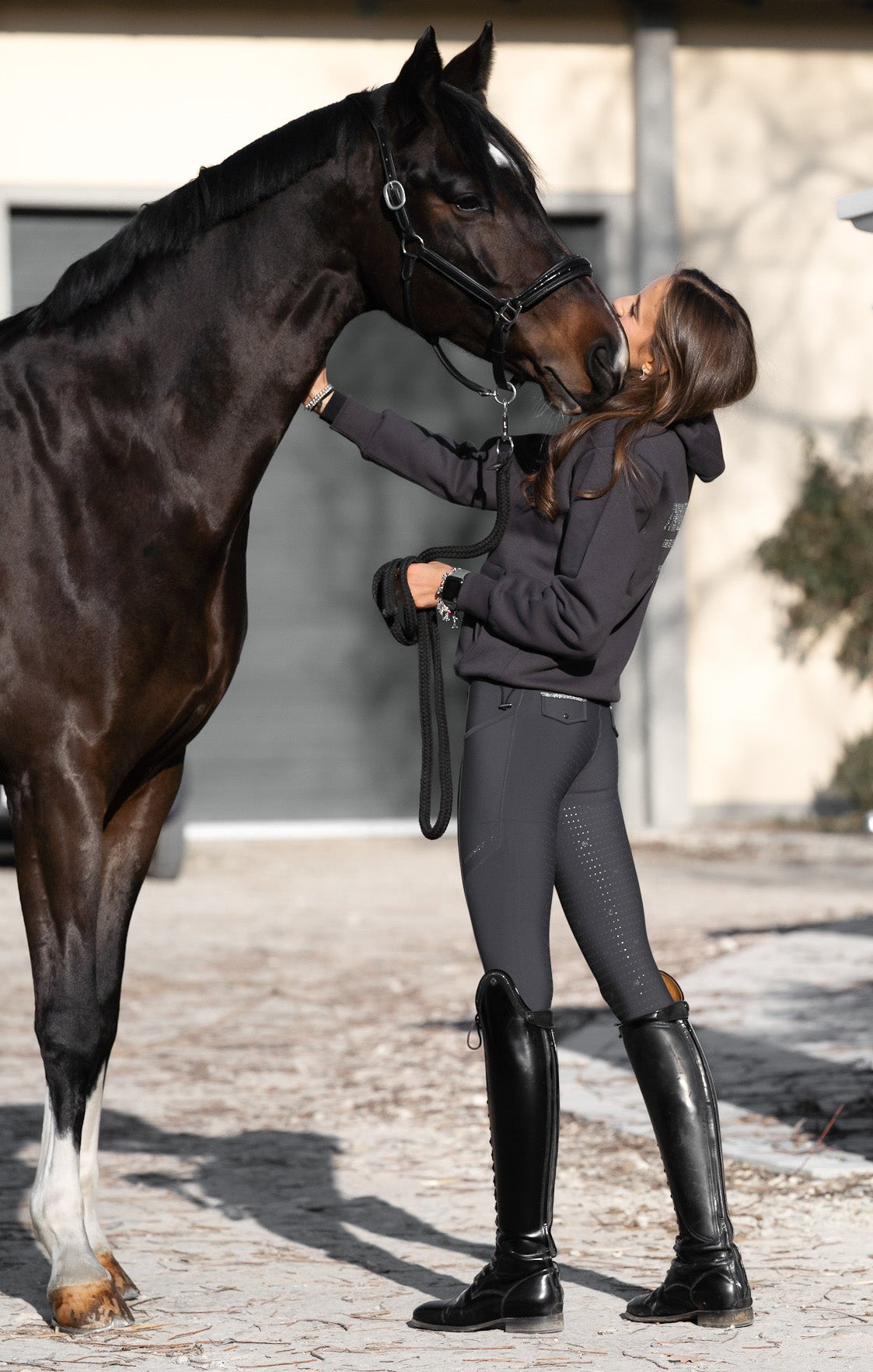 Der Stoff ist sehr flexibel und passt sich optimal der Figur an. Zusätzlich bietet der Stoff einen guten Halt und sorgt für ein tolles Gefühl im Sattel.