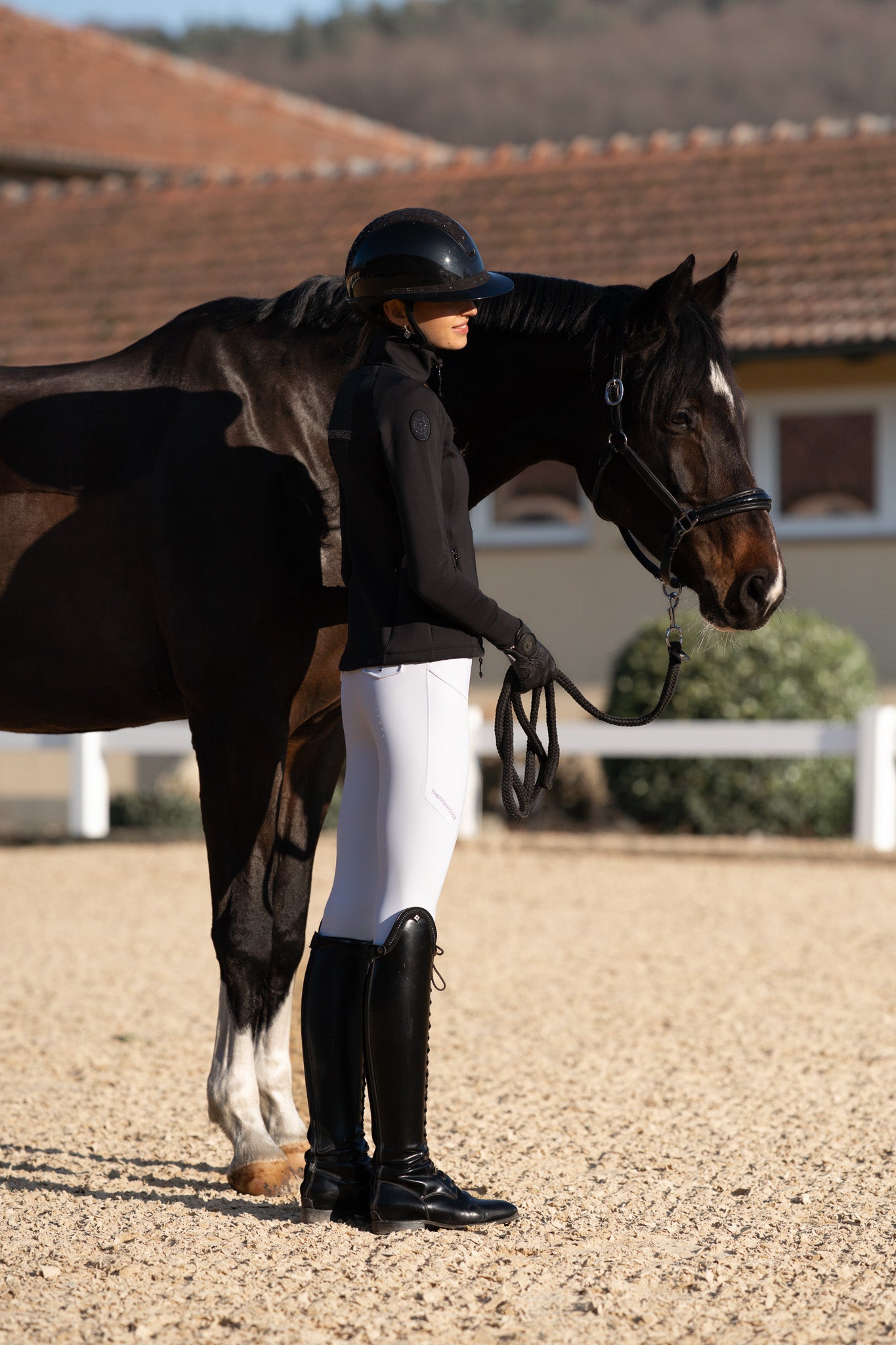 Der Stoff ist sehr flexibel und passt sich optimal der Figur an. Zusätzlich bietet der Stoff einen guten Halt und sorgt für ein tolles Gefühl im Sattel.